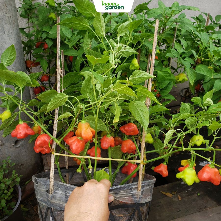 Chậu ớt hoa hồng hữu cơ Size trung